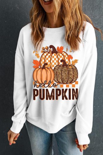 - The Crisp White Color Pairs With A Fun “Hello Pumpkin” Graphic For A Playful Seasonal Touch.